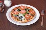 Tomatoes, fresh basil, garlic sauce, and mozzarella cheese.